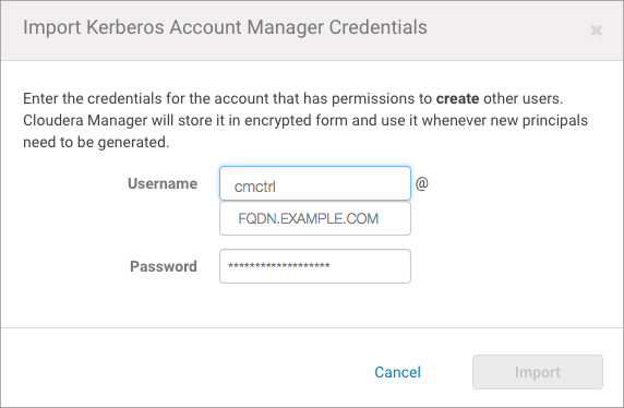 The steps below summarize the process of adding a principal specifically for Cloudera Manager Server to an MIT KDC and an Active Directory KDC. See documentation from MIT, Microsoft, or the appropriate vendor for more detailed information.