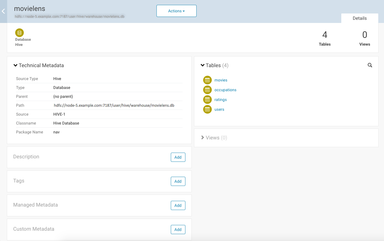 Click the value next to the Hive Tables heading (in this case, 103.9K) to view matching tables in Search.